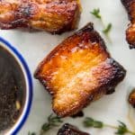 This air fryer pork belly is the best! The skin is nice and crispy while the meat is so tender. It has a slightly sweet yet salty flavour and is ready in just 20 minutes.